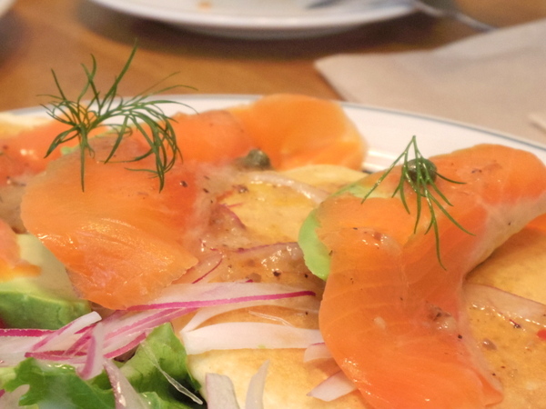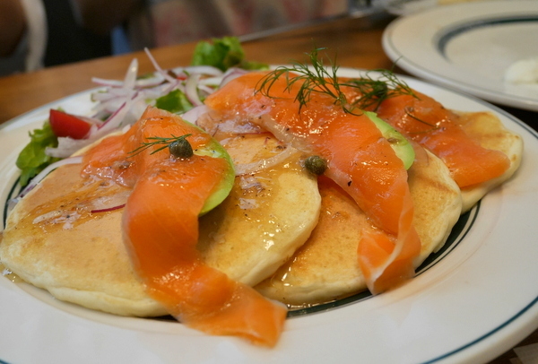 サーモンとアボカドのパンケーキ 950円