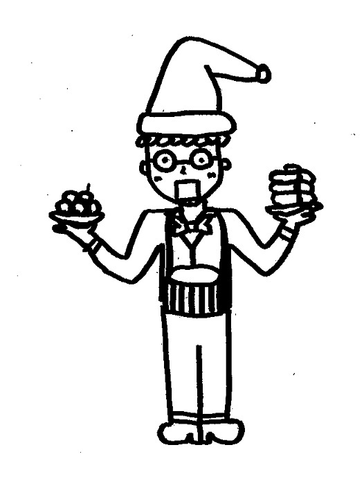 宮本画伯が自分のお皿にパンケーキをとるまで、