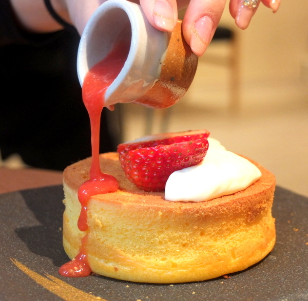 で、行ってきました 立川店 季節限定の紅ほっぺのパンケーキいただいてきました イチゴと卵の香りがすごくかぐわしい!!店員さんがお皿を置いた瞬間にパンケーキがぷるるんって揺れたんです こんなの初めてでめっちゃきゅんきゅんしました