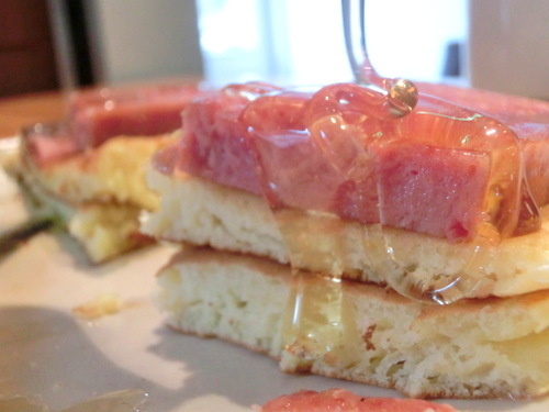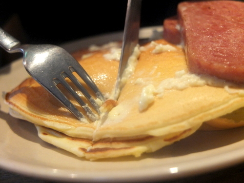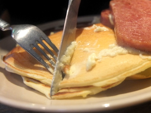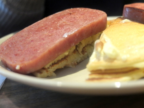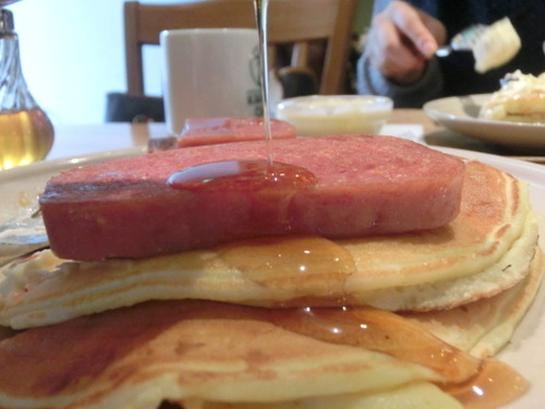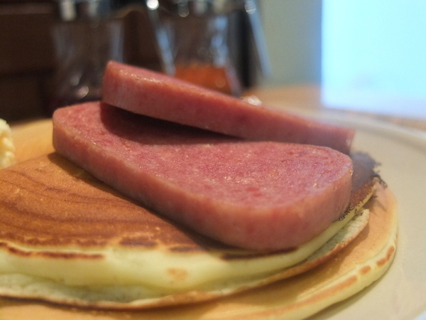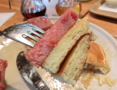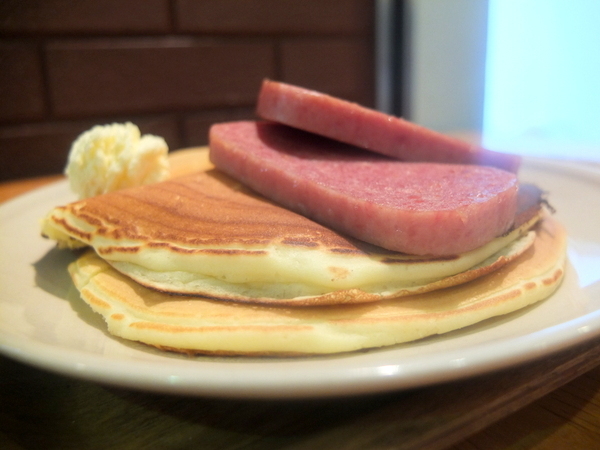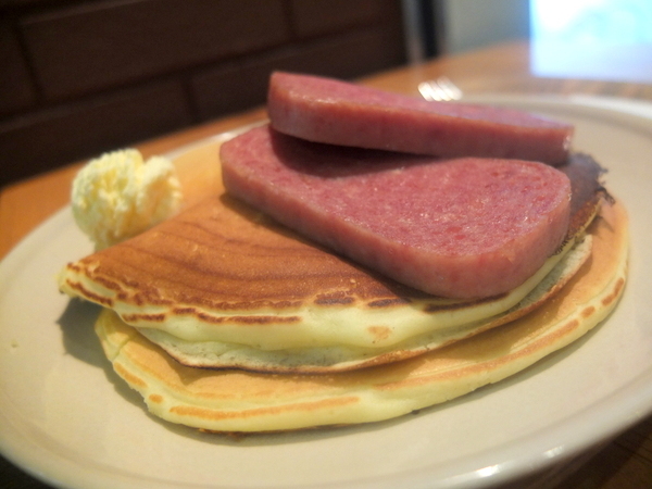 塩気と少しあまみのあるスパムはパンケーキを最高に美味しく演出
