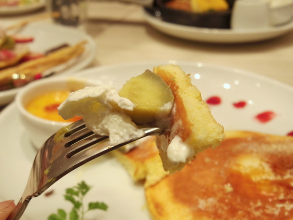 ツリーパンケーキはかなりくずすのためらいました!(笑)でも切った時ピスタチオクリームのニョキってでてくる様子は食欲そそられて最高でした♪