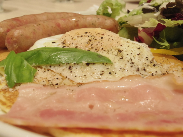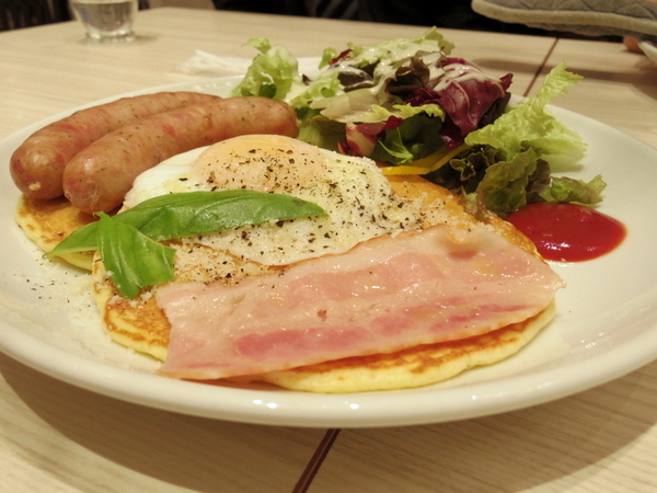 ベーコンエッグとバジルソーセージのパンケーキ 1280円