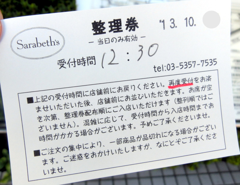 整理券をいただけるので、お店の前で待っていなくてよいのです