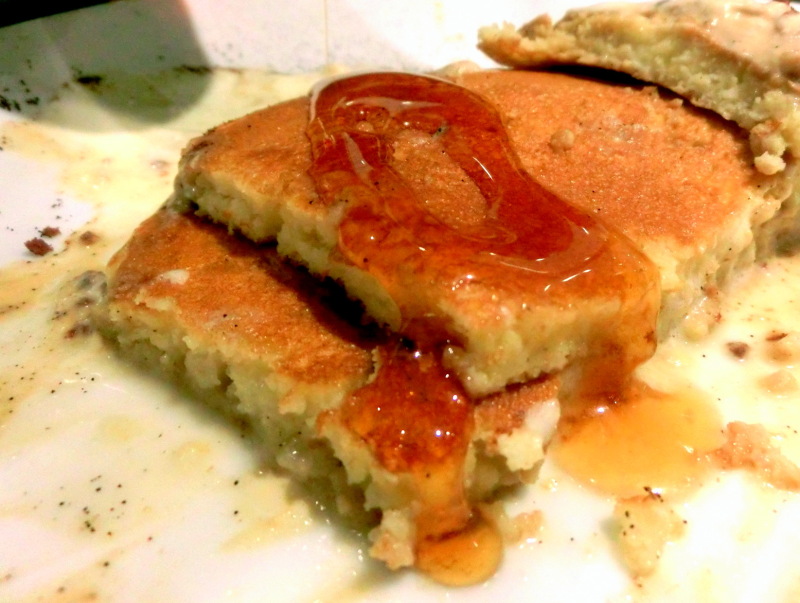 ほどよい塩気のもちもちのパンケーキと、
