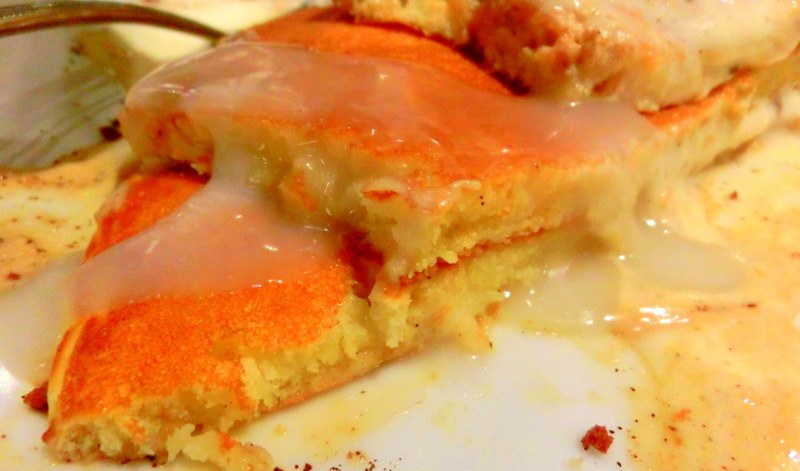 パンケーキのあたたかさでクリームがしたたる姿。