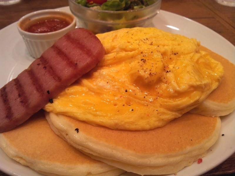 ふわとろオムレツとスパムのパンケーキ1000円