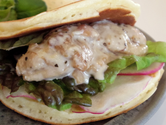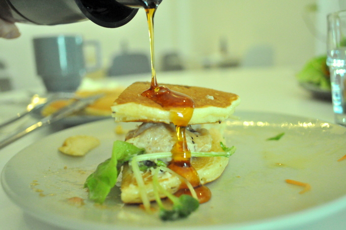 そこにパンケーキが加わることでパンチのあるチキンがまろやかに♪