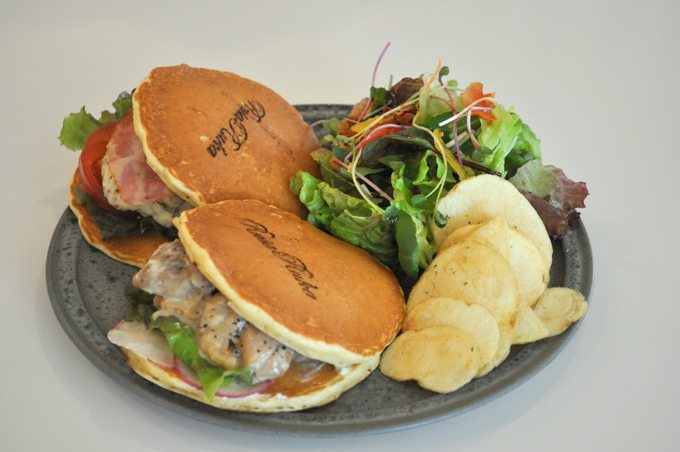 チキンがゴロッと乗っていて、これまたパンケーキでサンドー!