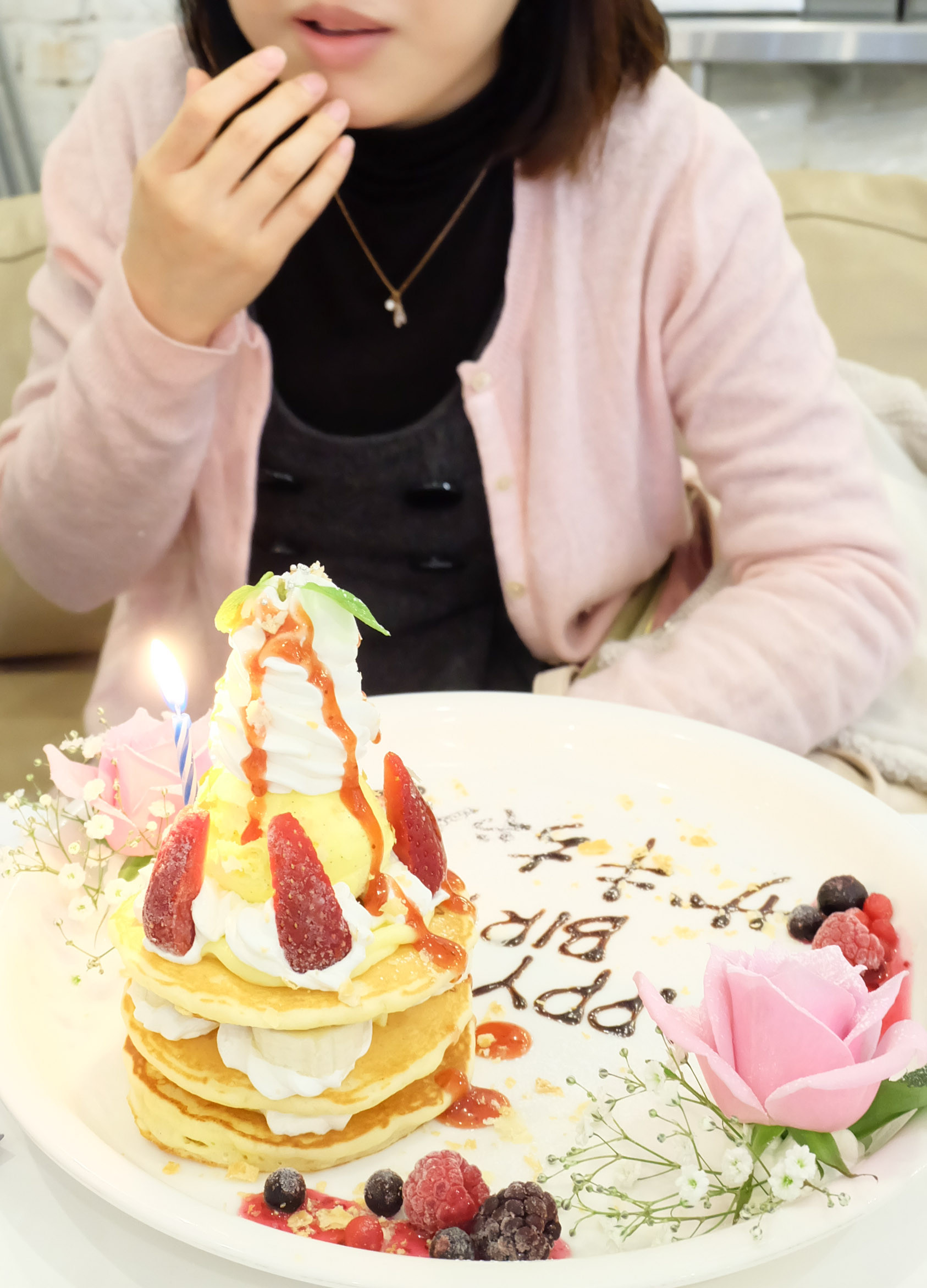 ってことで、お友達のバースデーパンケーキを