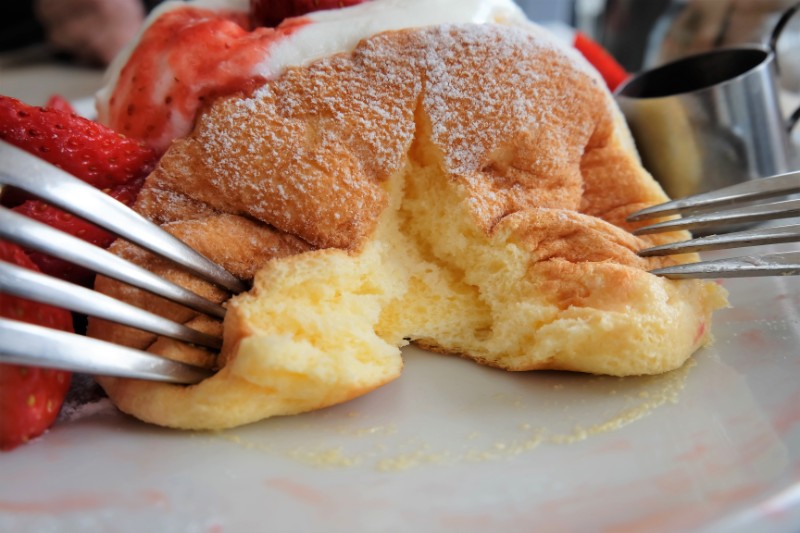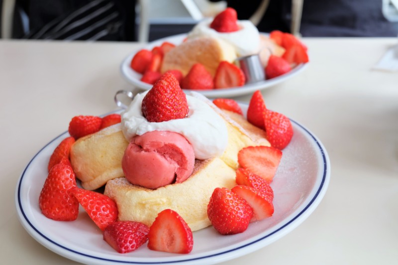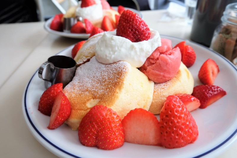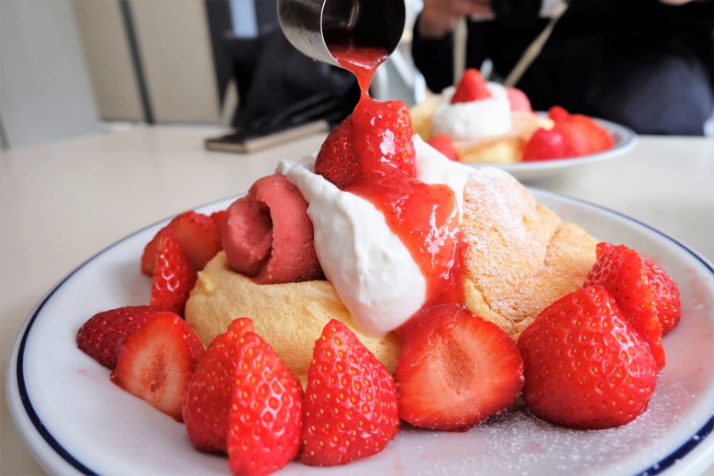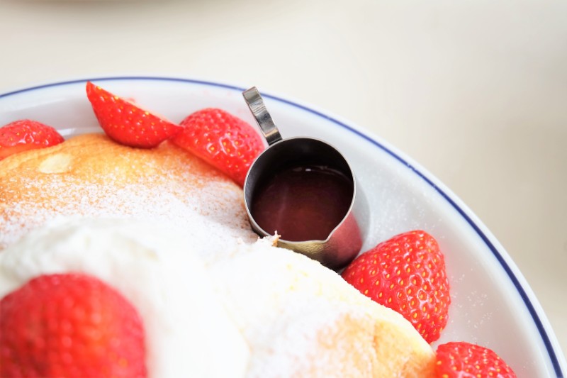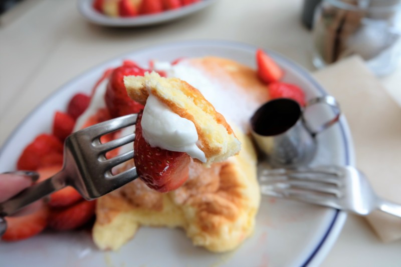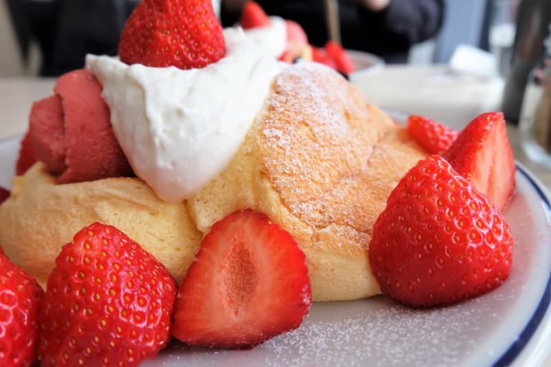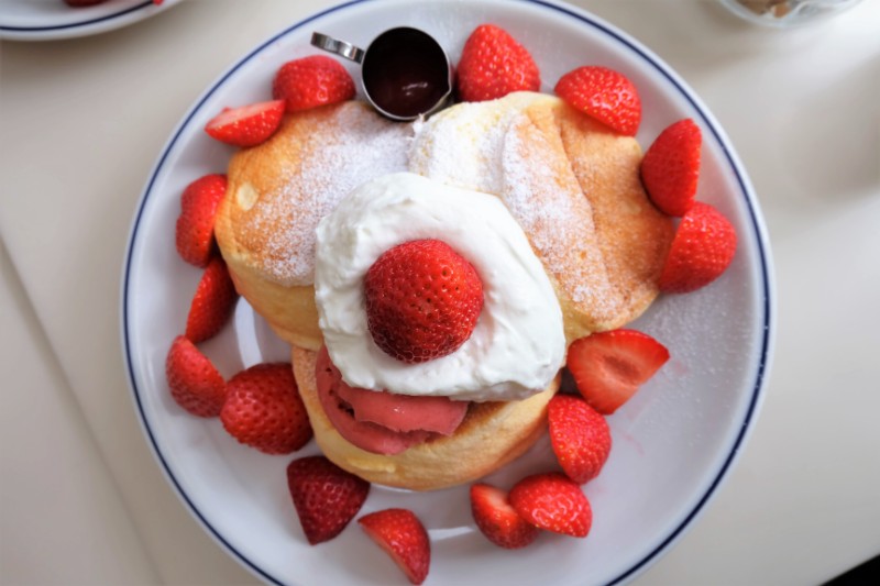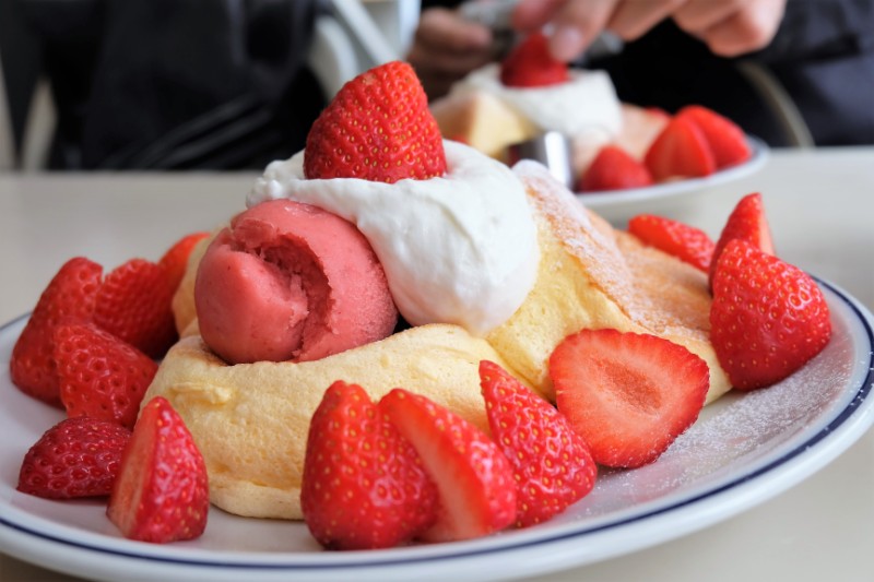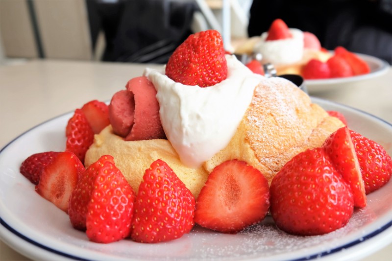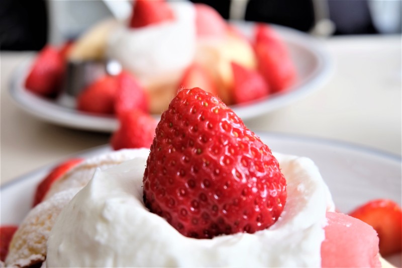 パンケーキの甘さと、あまおうの甘酸っぱさが