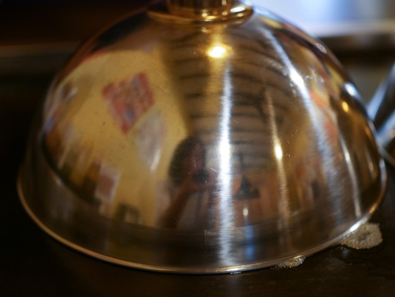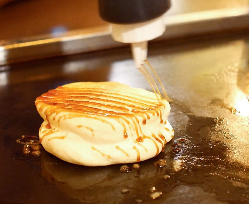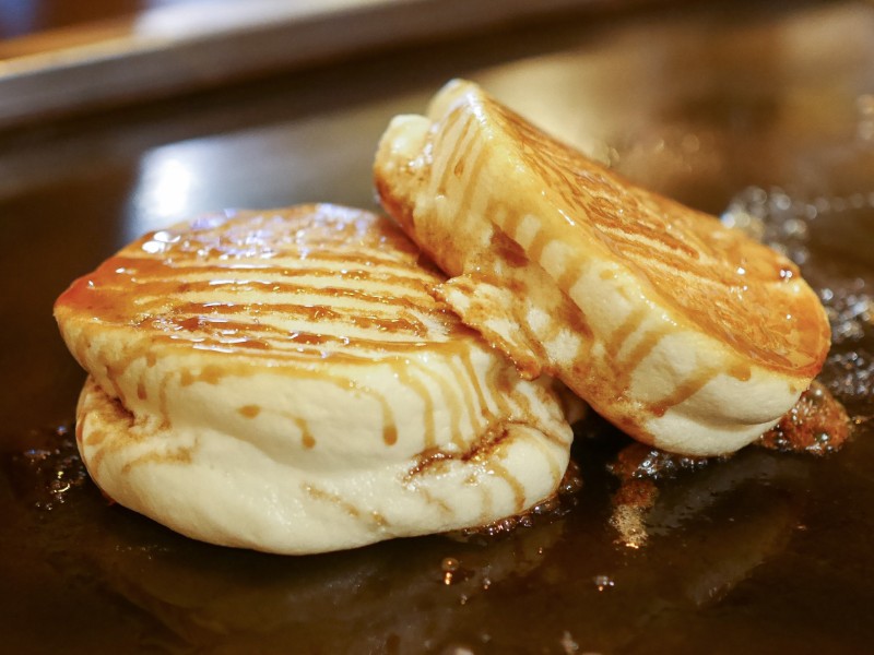 鉄板の上のメープルソースは温められて