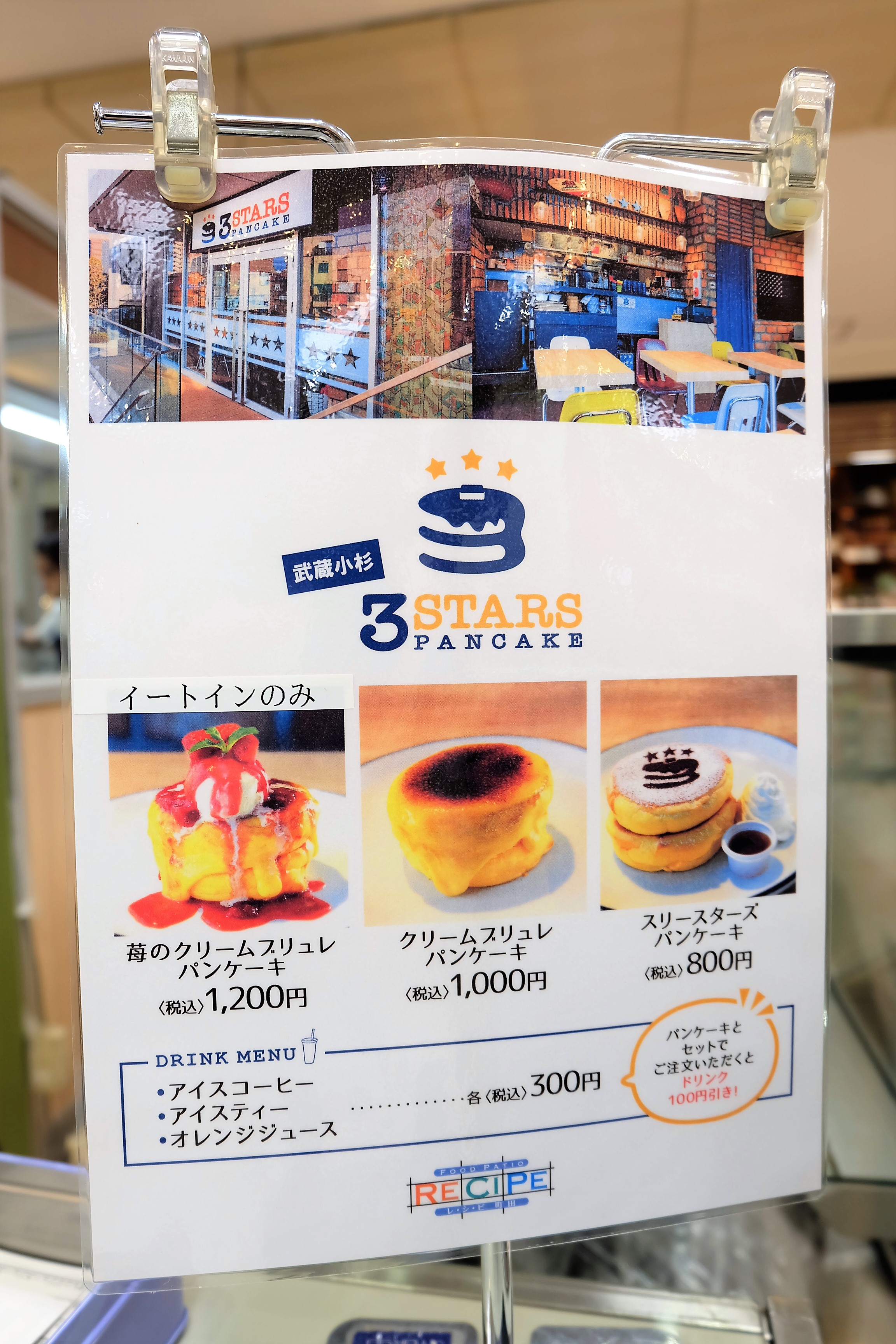 スリースターズのパンケーキ、武蔵小杉でちょっと場所的に行きづらいですが