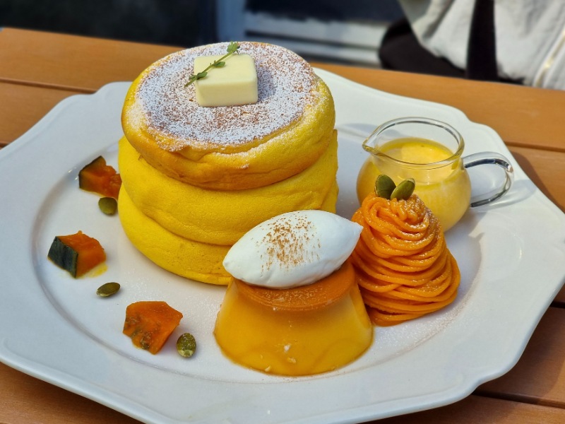 本当に本当に美味しいパンケーキでした😊秋の味覚にどっぷり浸かることができました!爪の部分、クリームに見えますが実はおばけのかわいいネイルなんですよ👻笑 そちらにもピント合えばよかったなー🤣