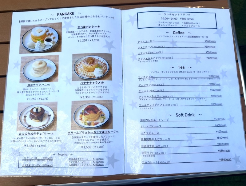 季節のパンケーキと三つ星パンケーキの組み合わせ、