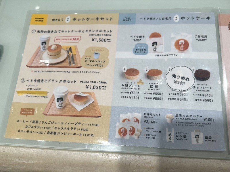 フードメニューはホットケーキのみなので