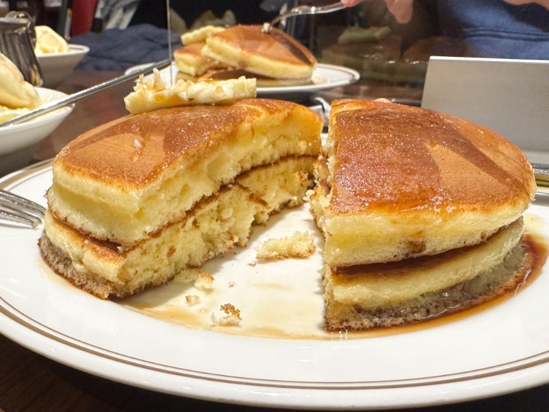 シロップで輝くホットケーキの姿を