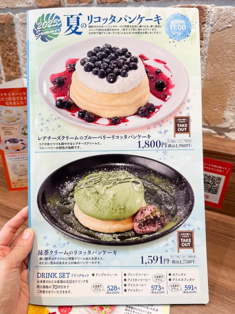 ドリンク付きのハーフサイズパンケーキを